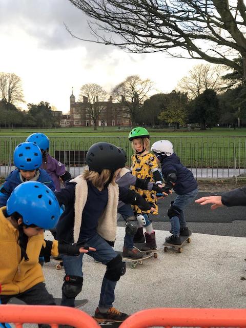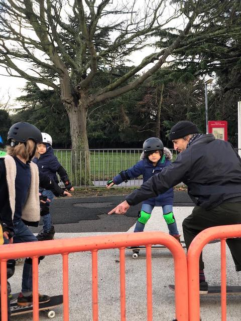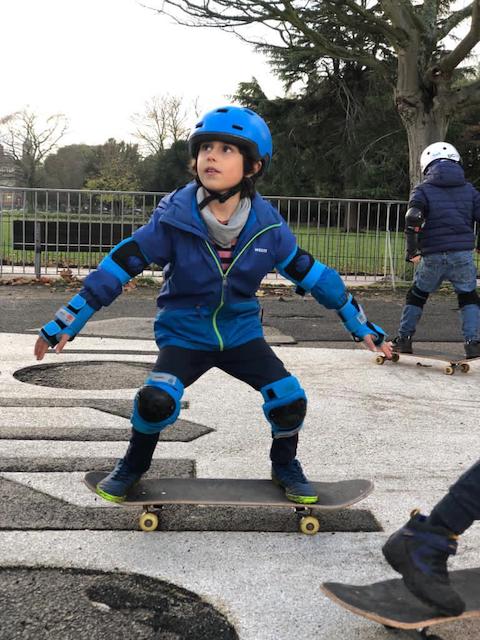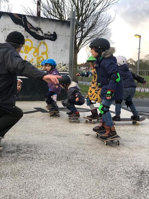 Mum Sarah, said ‘Stu is so brilliant with young people. He got 10 children 9 of whom had never skated before up and running. Such pride and a sense of accomplishment for them all. Stu’s school allowed us to do a fab celebration despite COVID-19! Art also takes weekly classes with his buddy Kasper weather allowing: the School of Skate has helped build not just their balance, concentration and posture but their confidence too! It’s a whole ton of fun! Thank you Stu‘.