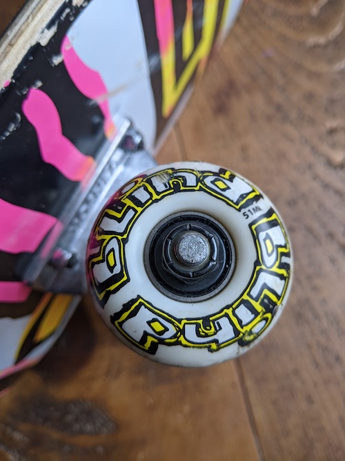 The Blind is a very nice board, with great components, akin to a pro setup, and it’s good to get the kids onto a board of this quality early on if you can afford it. Where it falls down is the bushings. They are too hard. Pick up some super soft Bones bushings and change them out. This bushings problem is something you will find in many many completes targeted at this age range.